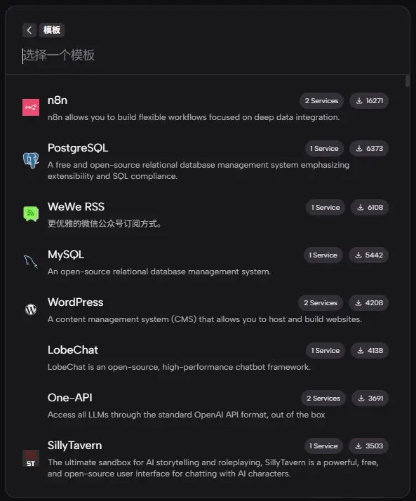 这上面有很多的项目比如n8n,LobeChat,SillyTavern。我们点击Deploy